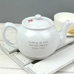 Personalise this charming vintage cupcake teapot, with a name or message on the front and a longer message on the reverse.  A personalised teapot is the perfect gift for any tea lover, for any occasion